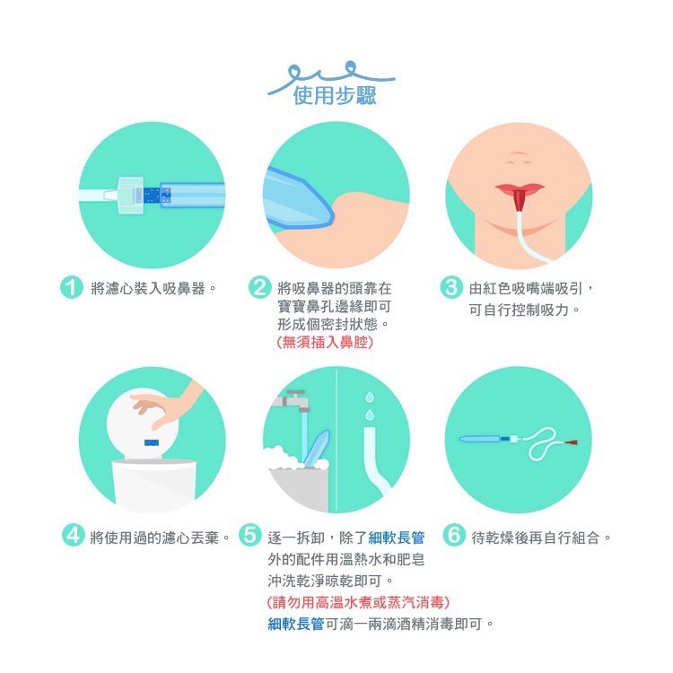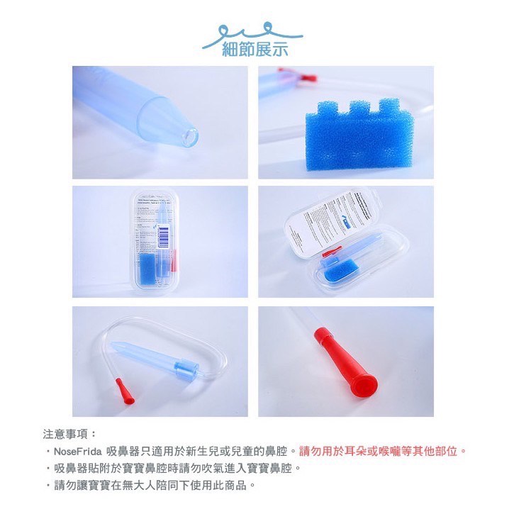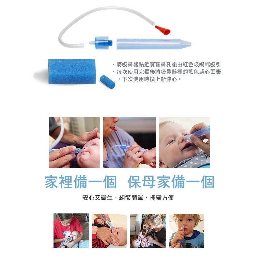 電動吸鼻器容易倒吸,因儲蓄痰液空間小,鼻涕黏稠牽絲排隊⋯吸入機內,須馬上送修,否則3天後生鏽,修理費1000-1500元不等。或姿勢方向拿錯,也會直接吸入機內,送修。請搭配帶個密封杯,吸一次就要倒出來,僥倖不倒,很容易誤吸入機內。我用過2臺:電霸我發現超棒的東西『DENPA 電動式鼻腔噴吸兩用鼻槍機』,售價$2,290!分享給你另一牌子,相似機型(韓國 Coclean 噴吸兩用電動吸鼻器 Deluxe) 手動抽痰槍我外出回診,主要用手動,安靜又方便,戴爾貝斯經常備而不用。孩子睡覺時,用手動較安靜(以前抽痰機聲音會驚醒睡中的孩子)。可接抽痰管備凡士林用於機器內,保養潤滑用(偶爾)可多買手把配件,以免不小心壓壞時需要更換。 Nosefrida 吸鼻器【瑞典原裝進口】NoseFrida 嬰兒專用吸鼻器 寶寶吸鼻器解決寶寶生病鼻塞-NoseFrida口吸式吸鼻器設計簡潔巧妙, 使用起來安全有效,而且很容易清洗,在歐美市場相當受歡迎 ,好評如潮(Parenting, Baby Talk, Cookie等美國雜誌都有其相關的報導)衛部醫器輸壹第015179號瑞典製造防菌過濾吸鼻器全球醫生及醫護人員推薦歐洲暢銷20多年瑞典製造信心可靠使用教學動畫:產品組成:內含1個吸鼻器+3個過濾棉小巧g設計附贈外盒收納容易產品材質:聚丙烯(不含DBP)使用方法:Step 1. 將寶寶平放在桌面或床面上,也可以用手抱起寶寶。Step 2. 將吸鼻器一頭放在寶寶的鼻孔前(不需要插入鼻孔),然後大人用嘴對著吸。Step 3. 剛開始請用較溫和的吸力,可以在必要時慢慢增大吸力,直到你看到比較濃稠的粘液,管內有海綿作為過濾,不用擔心會吸到大人口中。Step 4. 如果是非常濃稠的粘液或鼻渣,可以滴入1-2滴生理鹽水或寶寶專用滴鼻劑,然後進行嘴吸。Step 5. 每次使用後將各部件拆開用溫水清洗,自然風乾。產品優點:吸管不需插入寶寶鼻腔,所以即使寶寶亂動也不會傷到寶寶;吸力的大小可以根據需要自行掌控;可以清楚得看到從寶寶鼻子裡面吸出來的東西,如果有任何血液或任何不正常的顏色,你都能立刻看到它;過率棉的設計,不必擔心吸到大人嘴裡,或者導致感冒傳染等;可以防止寶寶的鼻渣被吸入到大人的口中;清洗方便,因為每個部件都能拆開,所以可以徹底清潔。注意事項:當吸嘴對著寶寶的鼻孔時,不可以對著紅色吸管口吹氣。NoseFrida只能用於清潔兒童和嬰兒的鼻子,不可用於耳朵或是喉嚨。本品不是玩具,請不要放在3歲兒童可以拿到的地方。不可將其連接到其他機械吸鼻器或是機器上。清潔方法:Step 1.將Nosefrida的部件拆開,用溫水及洗滌劑洗滌粗管,並用清水沖淨並晾乾;也可放入洗碗機清洗。Step 2.細長的吸管可以用幾滴消毒酒精清潔,清潔後將管中的水分甩乾。Step 3.更換過濾海綿。Step 4.將晾乾後的部件重新組裝。「知母時」跟「手動抽痰槍」比較因手把設計不同,所以「知母時」手會較酸抽痰接頭選擇,手動抽痰槍方便接「無菌技術下抽痰的抽痰管」「手動抽痰槍」也有過度操作(內部潤滑忘記保養時)手把拉斷過,所以各有優缺點,看家長使用習慣。#努媽居家照護 #努媽醫療與復健輔具 #我愛呼吸