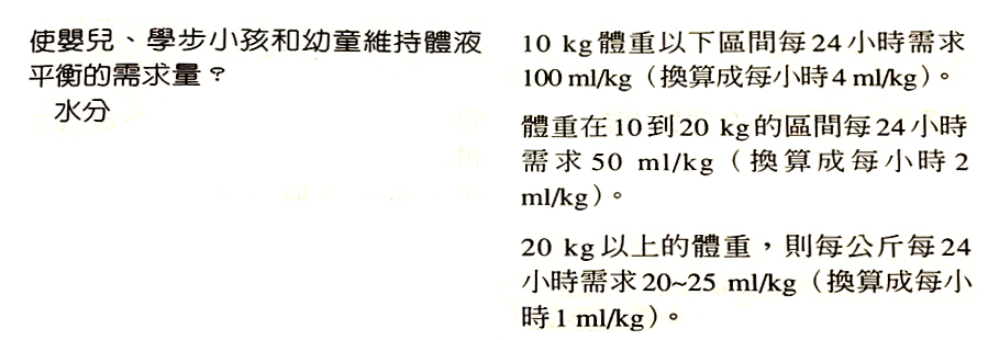 體重第一個十公斤,每公斤×100c.c